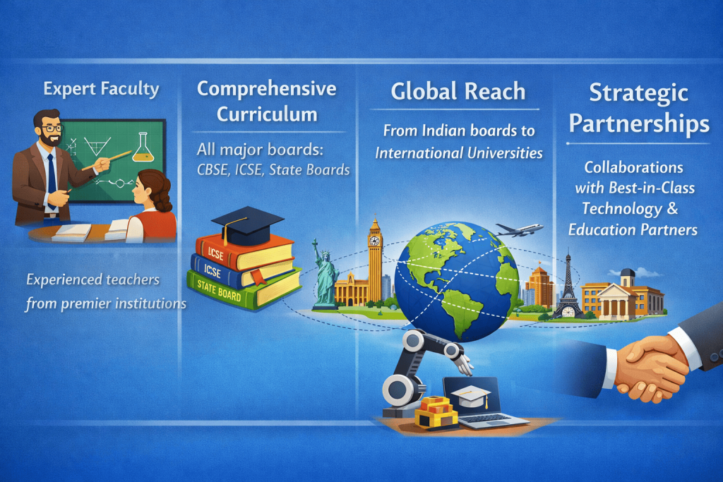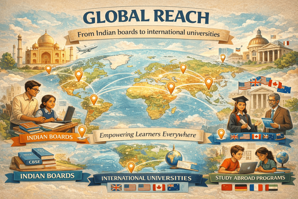 Our labs are designed to cater to a global audience, integrating both Indian education boards and international university standards. We equip our learners with a global perspective, preparing them to thrive in diverse environments. Whether it’s understanding international curricula or collaborating with peers across the world, our labs foster global connections.