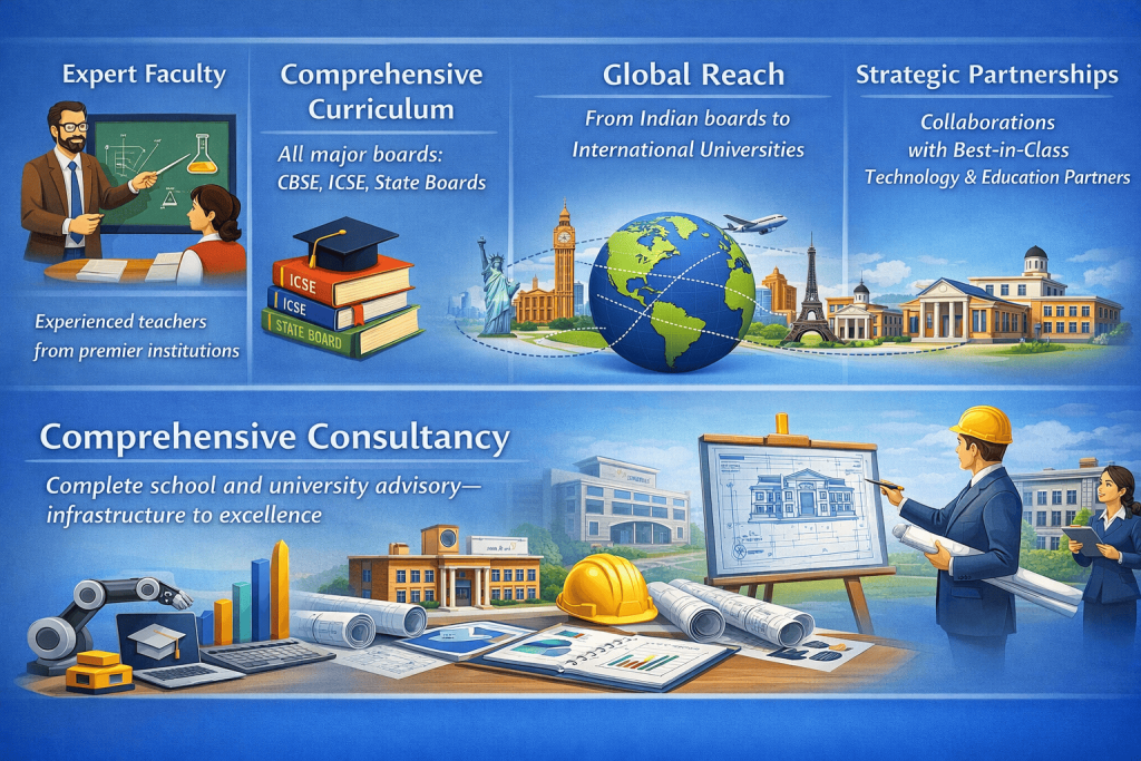 | Institutions | Educational Consultancy, Affiliations, Accreditations, Lab Setup, Collaborations, Faculty Training |